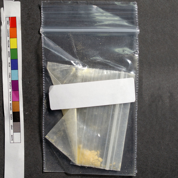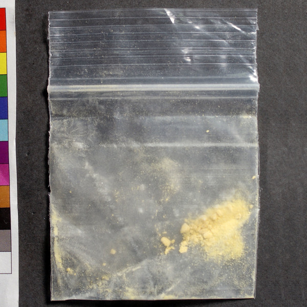 Pulverized bar-style yellow tablet, possibly a R039. [Drugsdata accepts partial tablets and pulverized tablets by prior approval only.]