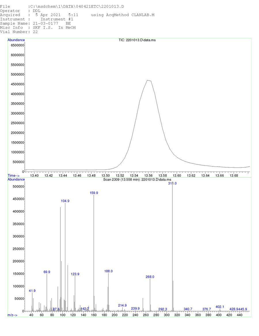 Jul 21, 2021: Sample re-analyzed, previously unidentified substance has been confirmed as Phenethyl-4-Fluoro-4-ANPP.