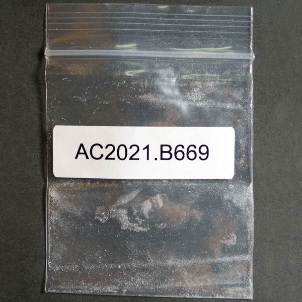 White/light tan powder in baggie. Acquired in 2020.