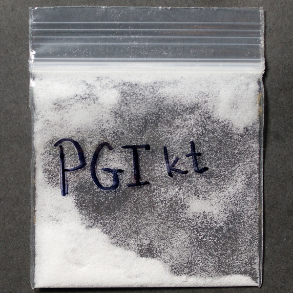 Shiny white powder in baggie.