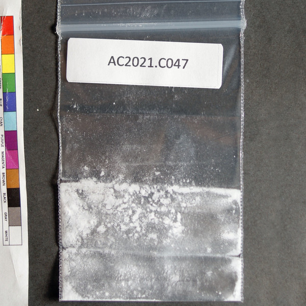 Soft, white powder in baggie. Described by sender as 'clear crystal'.