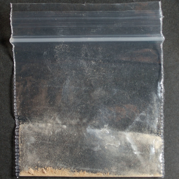Light brown powder in baggie.