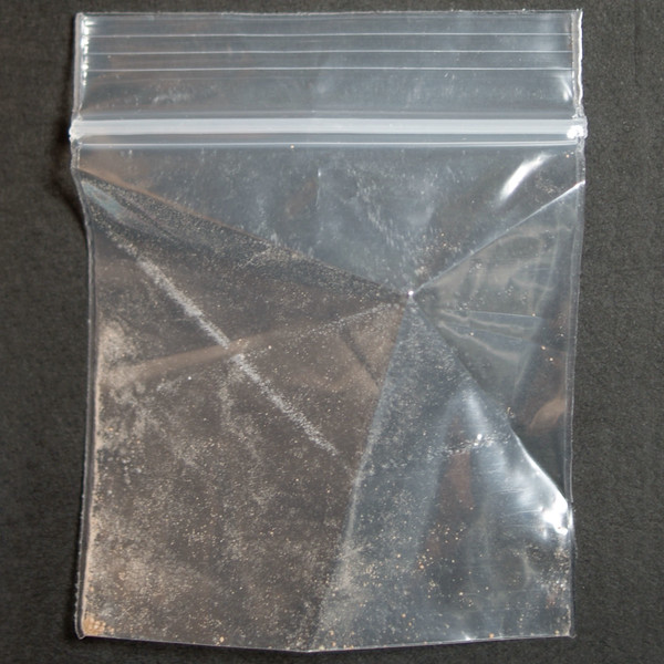 Tan-pink powder in baggie.