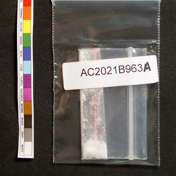 White crushed rock in baggie.