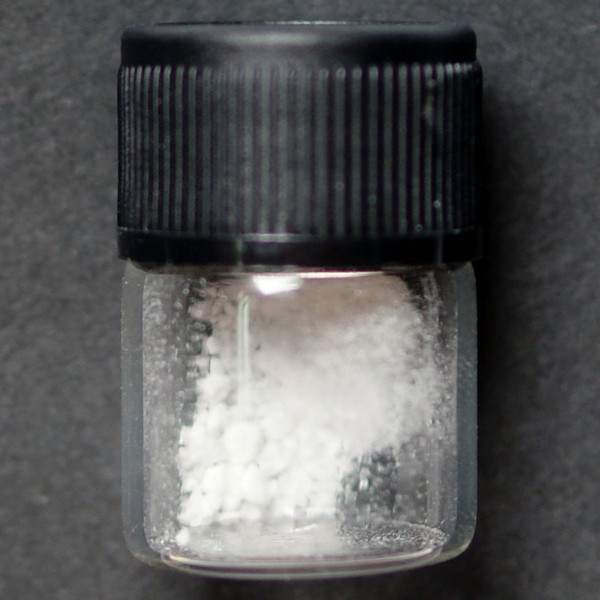 White powder in small glass vial.