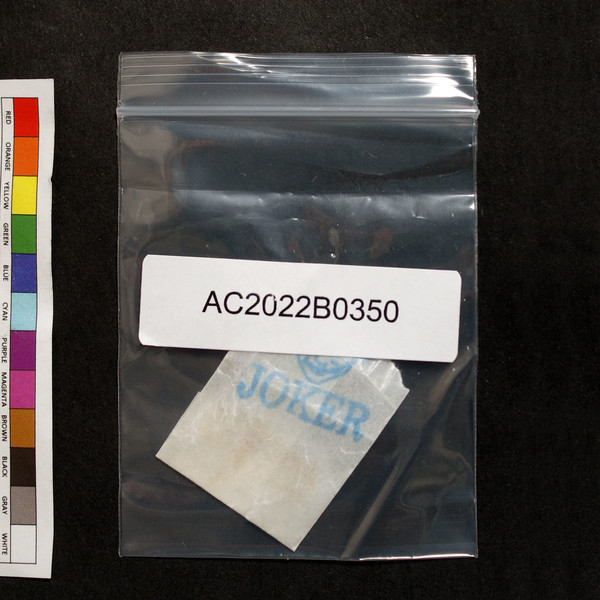 White powder residue in paper bag with 'JOKER' stamp. Sample name given as 'heroin'.