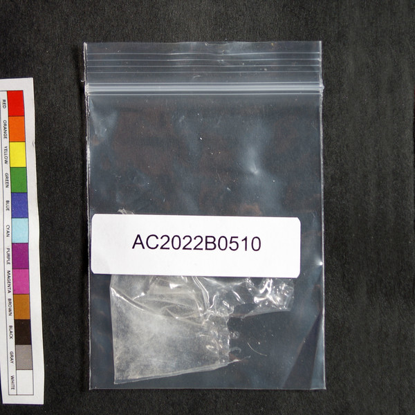 Off-white powder residue in baggie. Sample name given as 'heroin'.