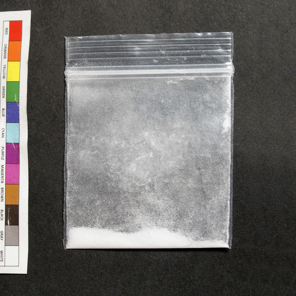 White chunky powder in baggie.