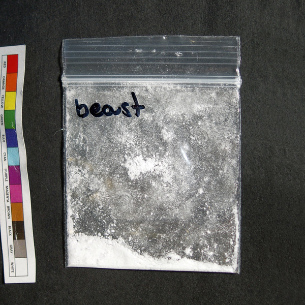 Soft white powder in baggie.