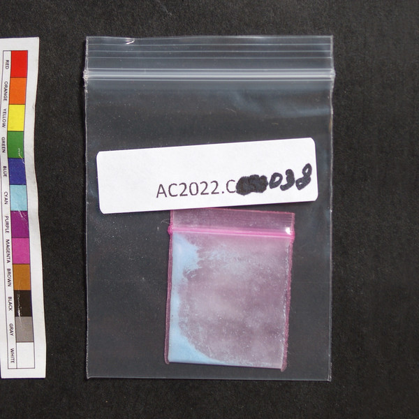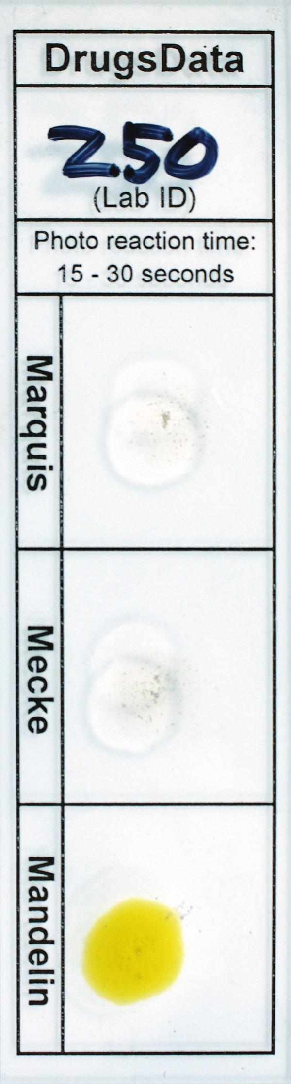 Blue powder in baggie from blue bar tablet. [DrugsData accepts partial tablets and pulverized tablets by prior approval only.]