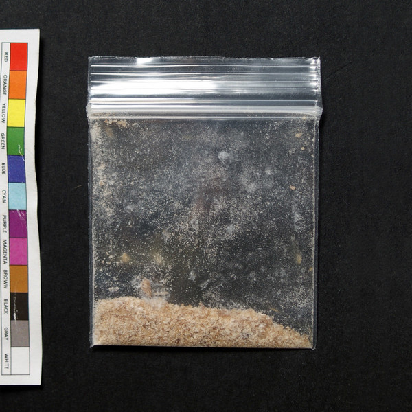 Brown crystalline powder in baggie. Submitter describes this as ''hard brown rock with dust''.