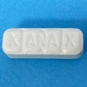 White powder in baggie from a white bar style tablet with 'XANAX' and three break lines. [DrugsData accepts partial tablets and pulverized tablets by prior approval only.]