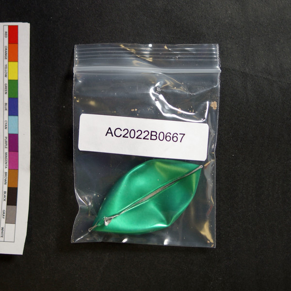 Tan powder residue on cotton and green cooker. Sample name given as ''Coke/Heroin/Fentanyl''.