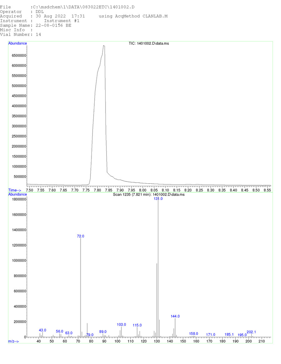 We need the help of outside expert analytical chemists and drug geeks to determine what substance matches the mass spectrum (MS) fingerprint. The lab's GC/MS graphs can be viewed by clicking on the thumbnails on this page.