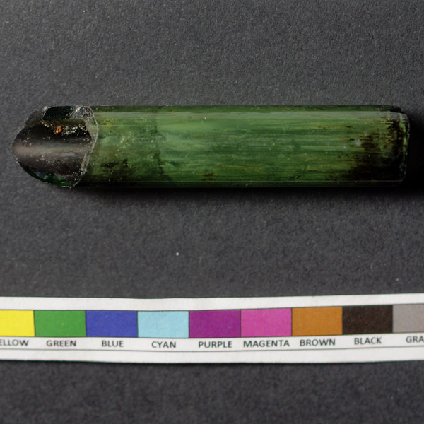 White powder residue from white rock on green broken glass pipe.