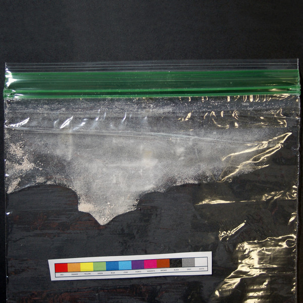 Tan powder in baggie. Sample acquired in 2021.