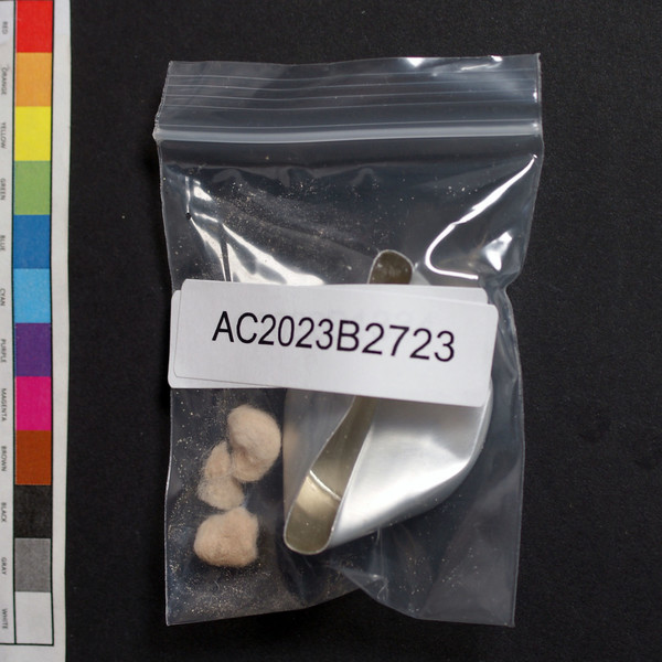 Tan powder residue on cotton and cooker.