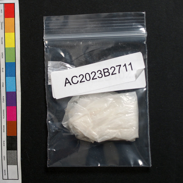 Light tan powder residue in baggie.