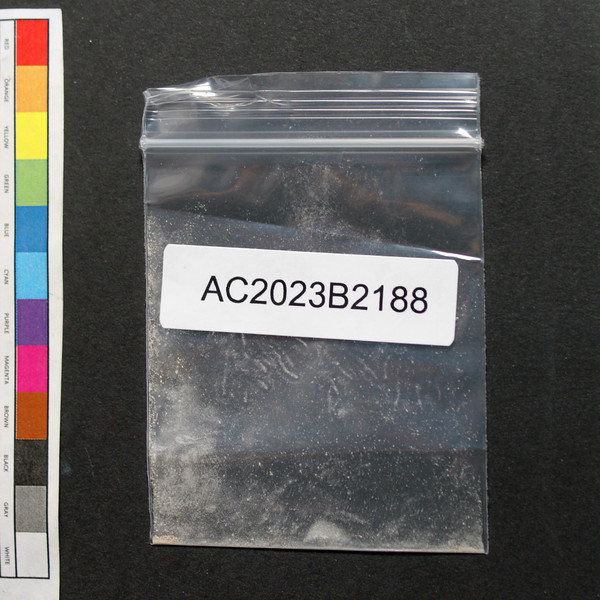 Off-white powder residue in baggie.