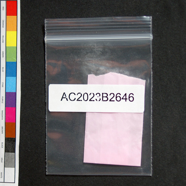 White powder residue in pink paper bag with no markings on baggie. Sample acquired in Sept 2022.