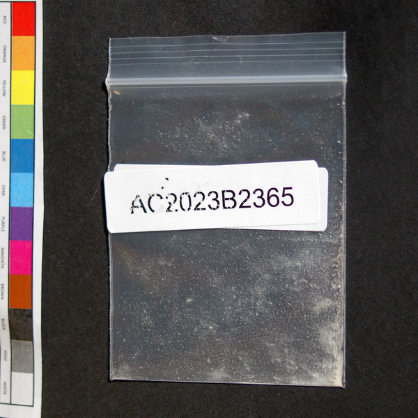 Light brown powder residue in baggie.
