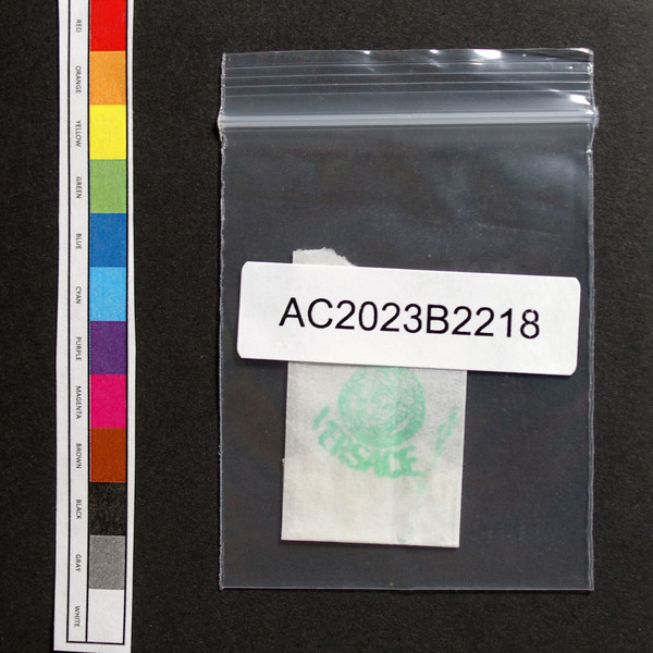 White powder residue in paper bag with 'VERSACE' stamp in baggie.