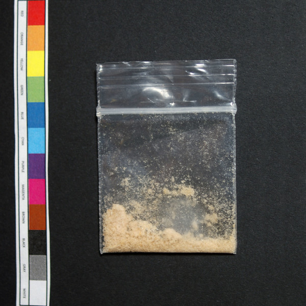 Tan powder in baggie.