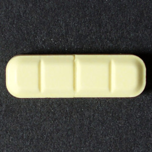 Yellow bar-style tablet with two scores and imprint R 0 3 9. Break lines on reverse side, too.