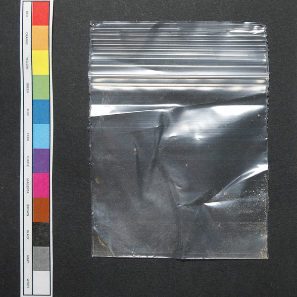 Brown/white powder residue in baggie.
