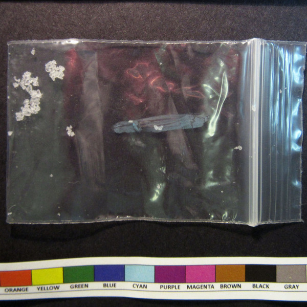 No drug detected by GC/MS. Sample insoluble to methanol and water, table salt and sugar ruled out. Unusual partial positive reaction with silver nitrate. Flame test: Yellow. (A positive reaction for silver nitrate and sodium chloride is consistent with table salt, however sample was insoluble in water, which is inconsistent with table salt.)