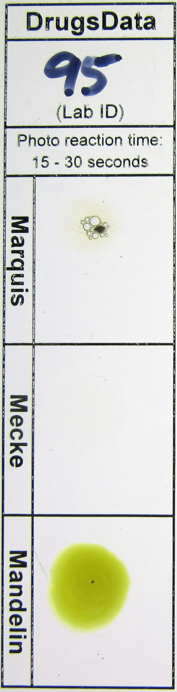 White powder in blue and black baggie.