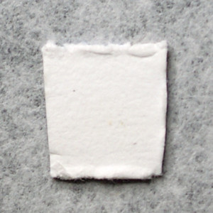 One dose unit of blotter, tip of blue and beige Rick Sanchez head visible, white background.