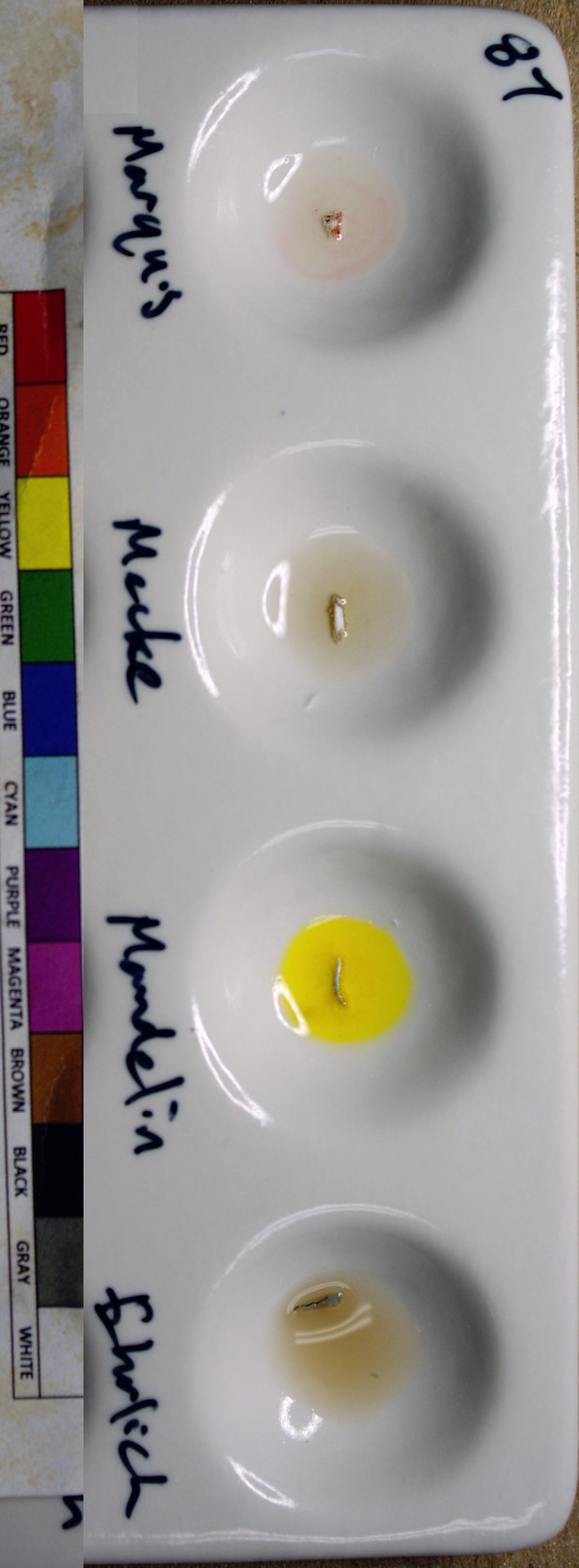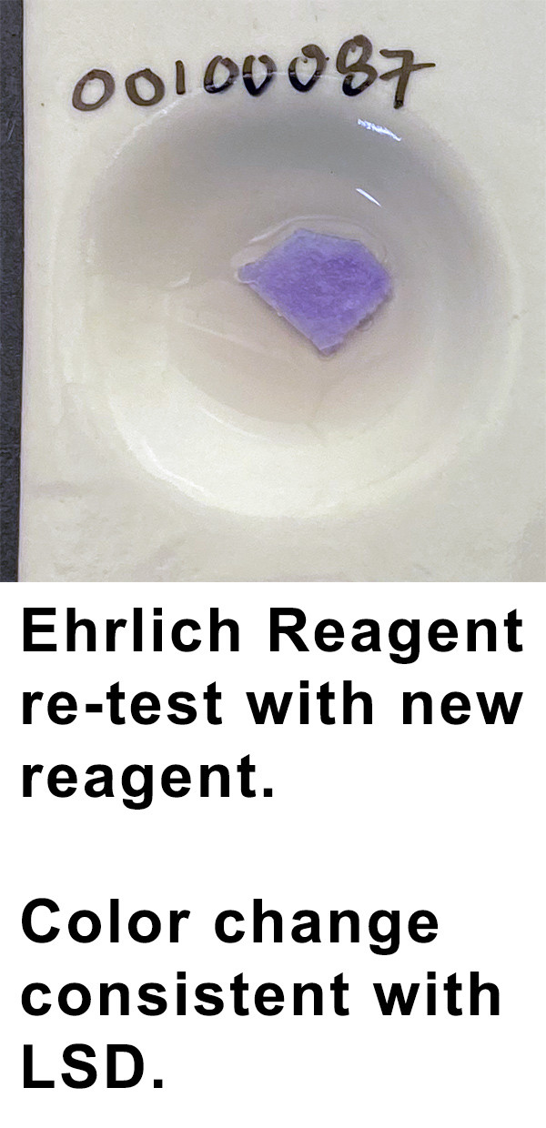 Feb 6, 2020: The Ehrlich reaction is unusual, and we think it may be because the reagent itself is oxidized (gone bad). We ordered a fresh Ehrlich reagent and will be redoing the Ehrlich next week. *This does not impact the GC/MS result, which will not change*.