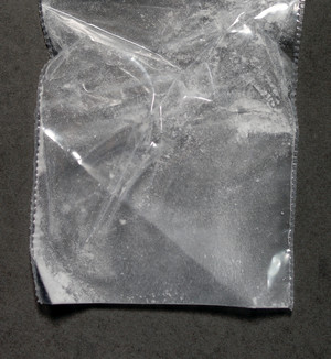 Soft white powder in baggie.