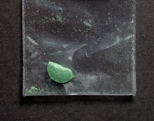 Round green tablet (broken) with no imprint.