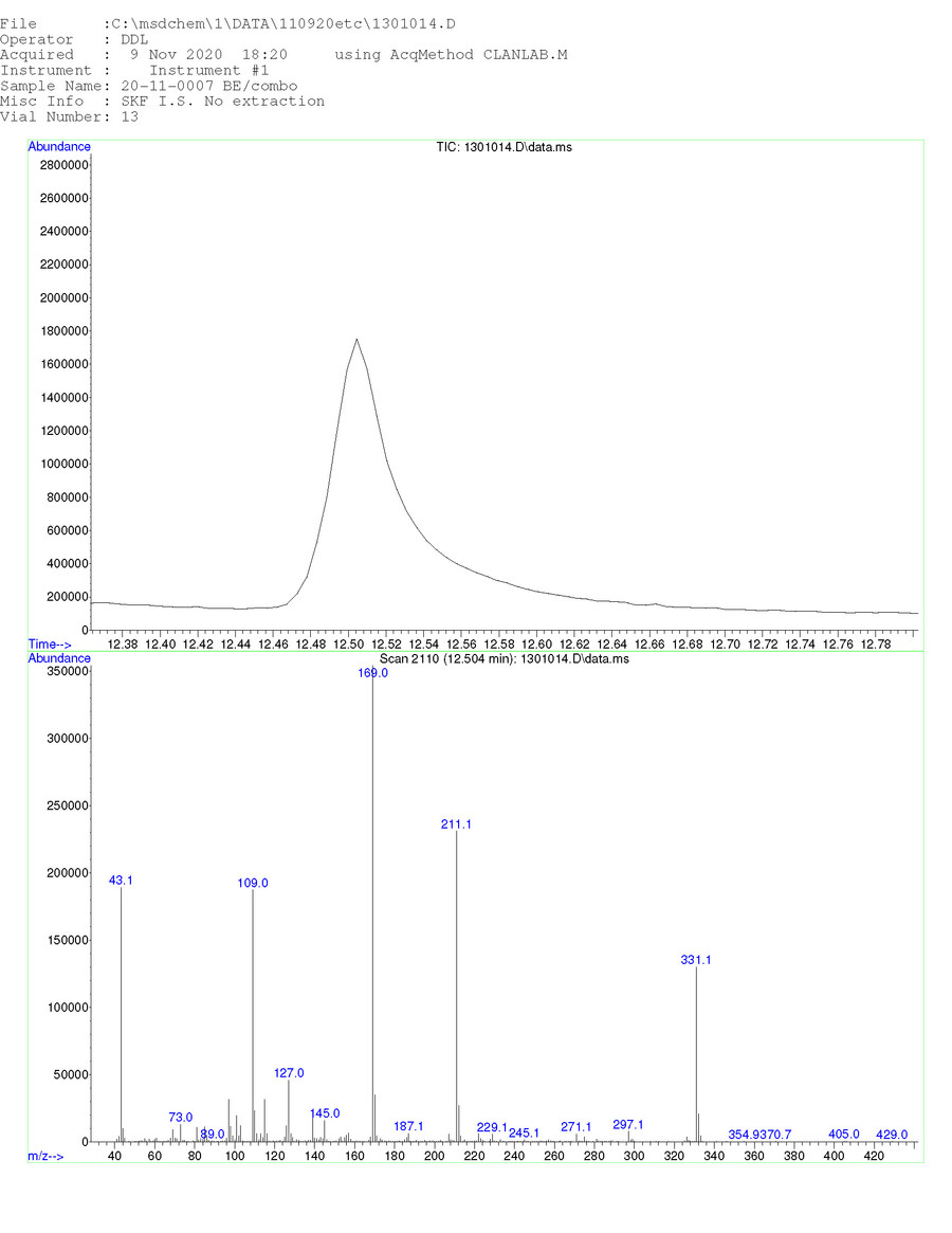 BTNX Benzo Test Strip (prior to sending in sample): Positive
