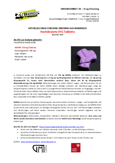 Analyzed by Drogenarbeit Z6/MDA Basecamp (Innsbruck, Austria) in Nov 2020.