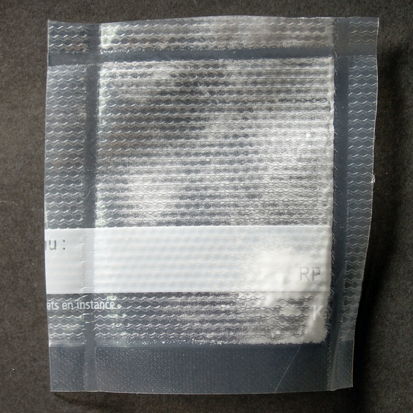 Heat-sealed pouch of 100 mg soft, white powder.
