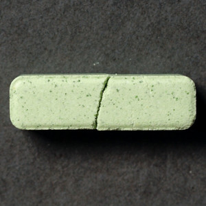 Green tablet with two scores and imprint S 90 3. No break lines (blank) on reverse side.