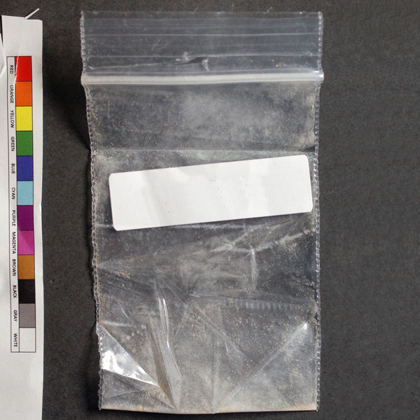 Tan powder in baggie (color described by sender as white).